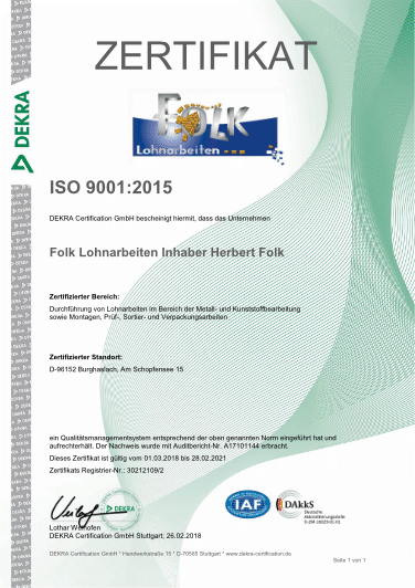 Die Einführung eines Qualitätsmanagement-Systems nach DIN EN ISO 9001:2015 mit all seinen Anleitungen für die tägliche, qualitätsorientierte Arbeit spiegelt unsere auf Qualität ausgerichtete Firmenpolitik wieder.